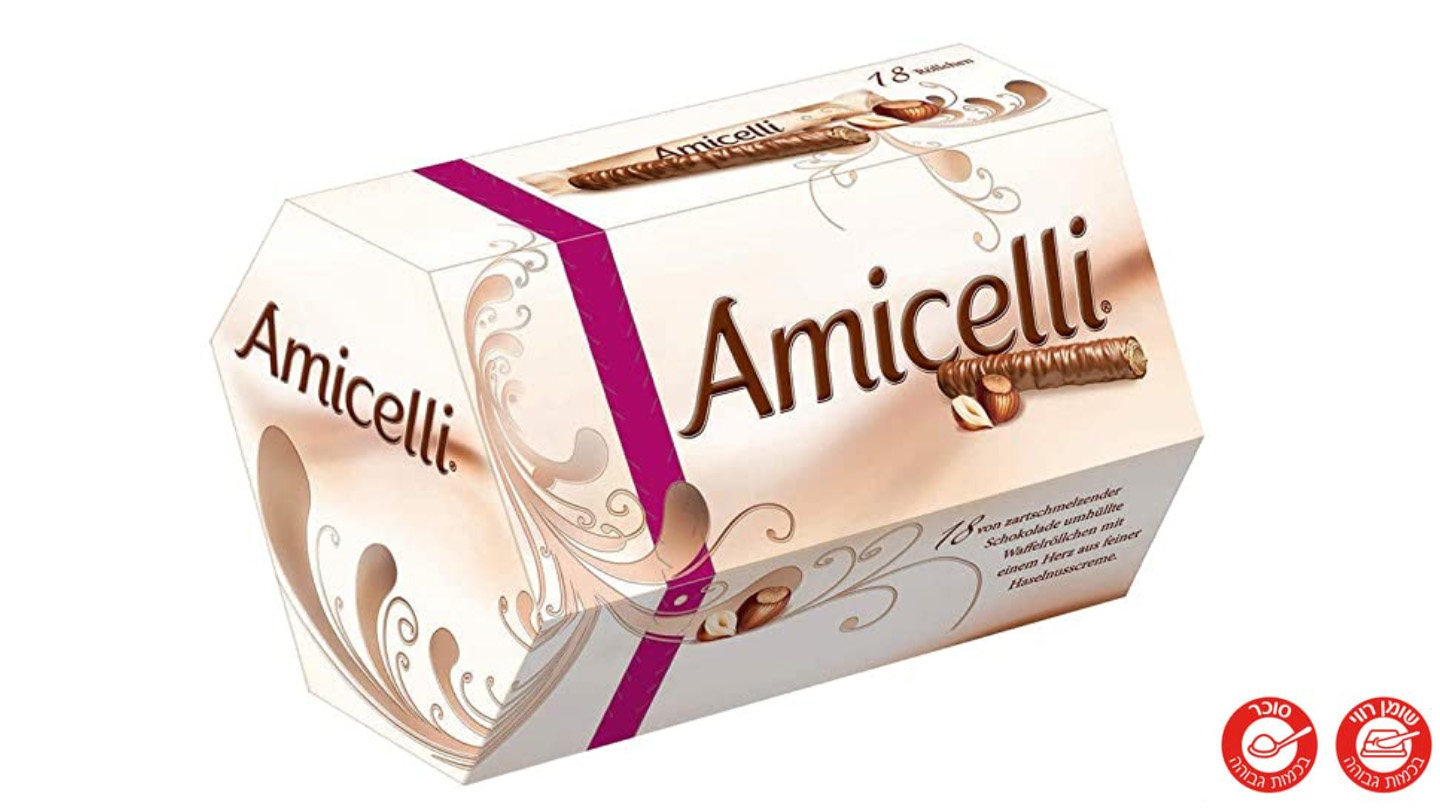 / גליליות במילוי קרם אגוזי לוז במארז גדול 225 גרם – AMICELLI
