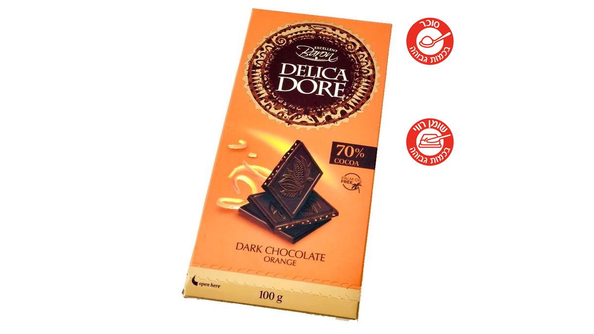 / טבלת שוקולד מריר 70% איכותי עם תפוז – Baron Delicadore Dark Orange