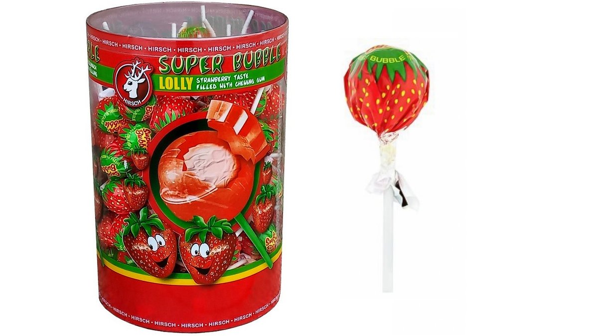 סוכריה על מקל בטעם תות עם מסטיק – HIRSH
