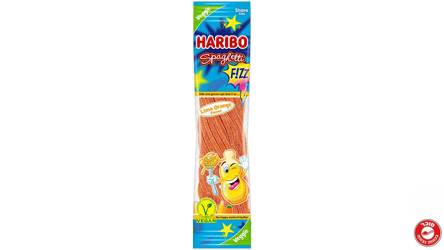 / סוכריות גומי ספגטי בטעם תפוז לימון חמוץ – HARIBO SPAGHETTI FIZZ LIMO ORANGE