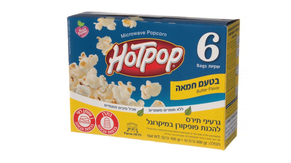 / פופקורן להכנה במיקרוגל בטעם חמאה- HOT POP
