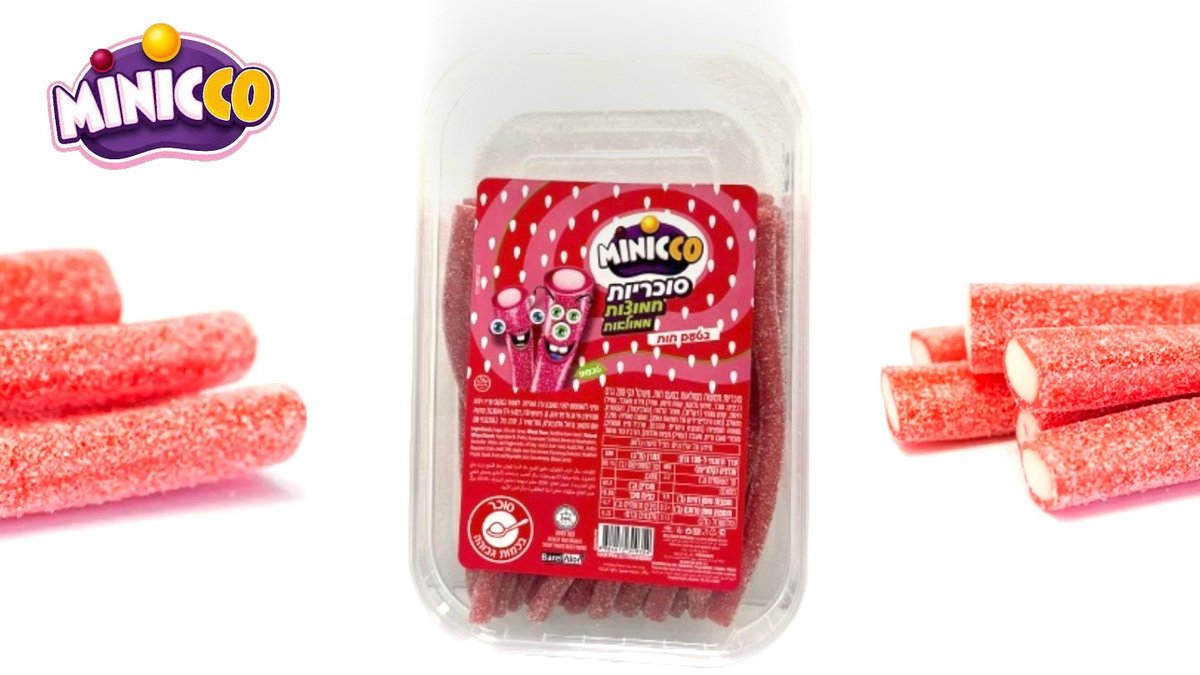 צינורות ממולאים בטעם תות חמוץ בקופסא – Minicco