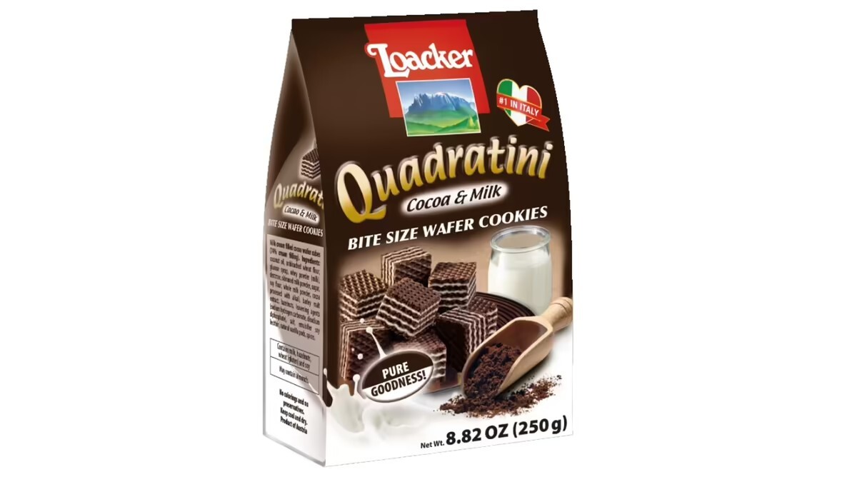 / קוביות וואפל במילוי חלב וקקאו – Loacker Quadratini Cocoa & Milk