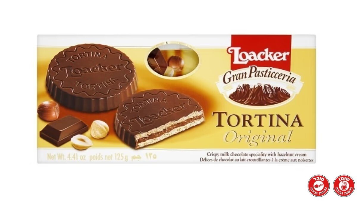 שוקולד חלב ממולא בקרם אגוזים ועלי ופל – LOACKER TORTINA ORGINAL